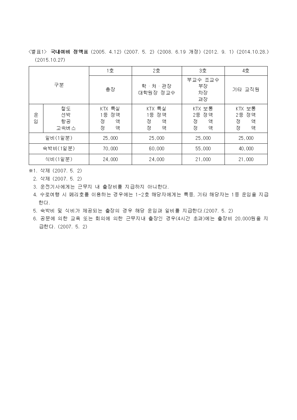 별표1 국내여비 정액표 (2005. 4.12) (2007. 5. 2) (2008. 6.19.hwp